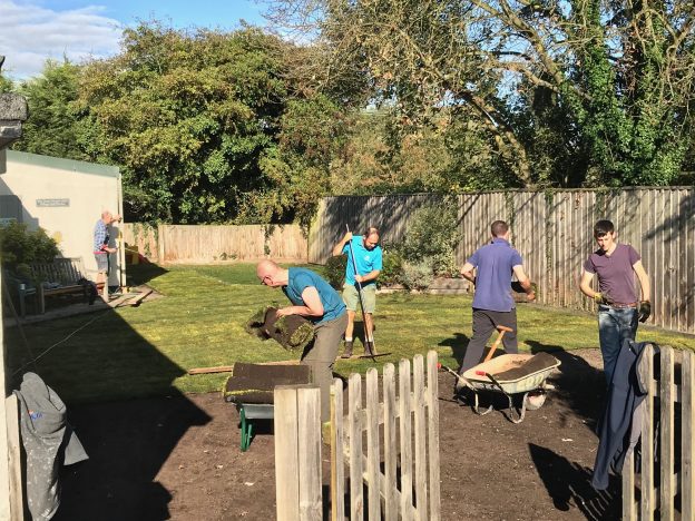 A big thanks to all the Littlebury Lads who came to help re-turf the village hall garden on Saturday 20th October, especially Bob, our resident expert! Our garden now looks fabulous, ready for some outdoor events in the summer.